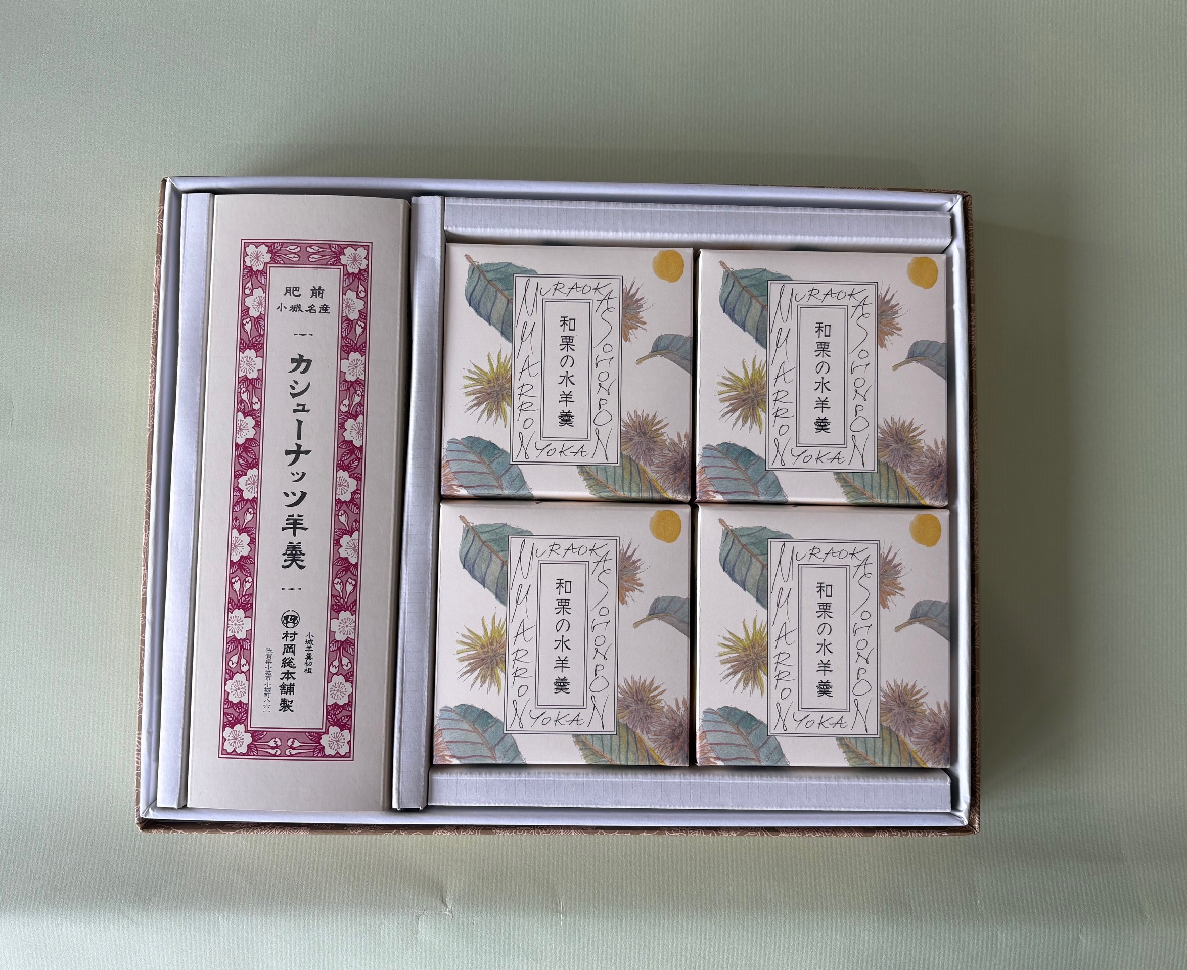 人気の「カシューナッツ羊羹」と「和栗の水ようかん」を詰め合わせました。
